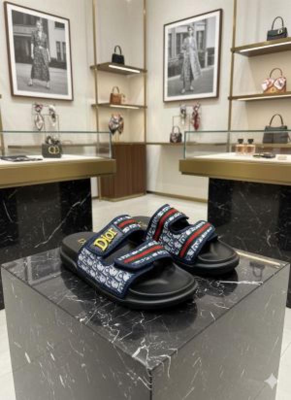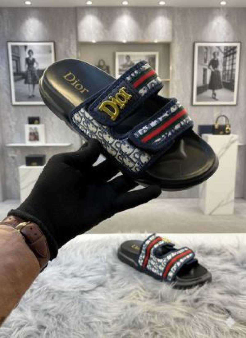 Dior-slide-blue-red-oblique-embroidered-cotton