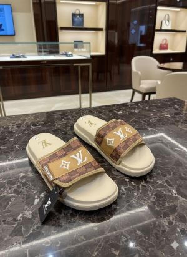 Louis-Vuitton-brown crem Premium Quality Mens Flip-flops