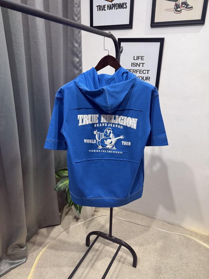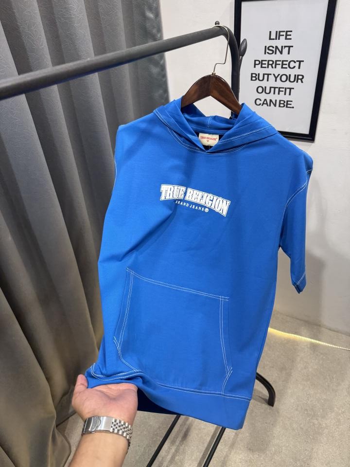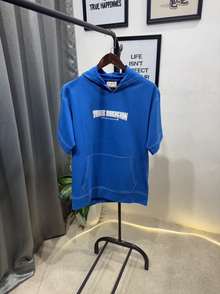 True religion drop shoulder hooded imported tshirt blue